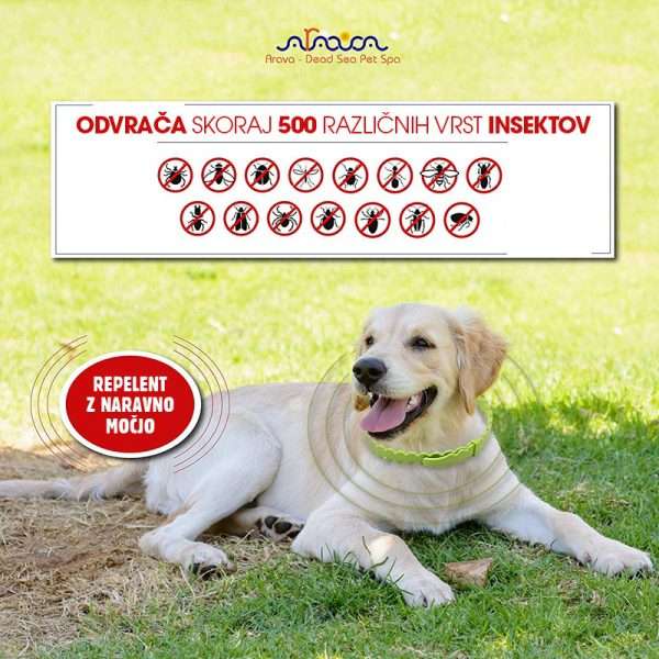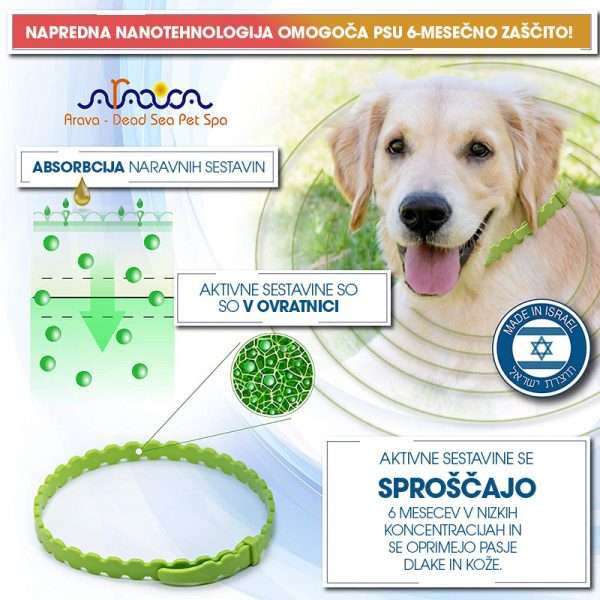ARAVA BOTANICAL ovratnica z eteričnim oljem citronele, rožmarina in timijana - PROTI BOLHAM IN KLOPOM - 35cm