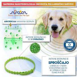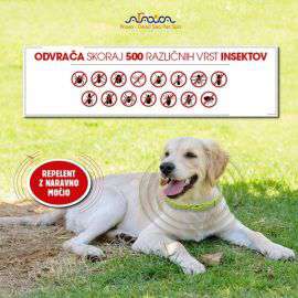 Ovratnica je prepojena z eteričnimi olji, ki odganjajo klope in bolhe.